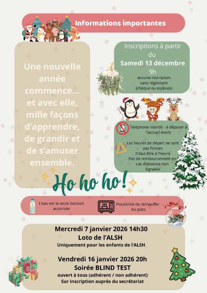 Programme Vacances de Noël 2025 – ALSH By MJC des Fleurs|2025-12-08T21:27:51+01:00December 8th, 2025|ALSH, Animations, Jeunesse, Programme ALSH|Comments Off on Programme Vacances de Noël 2025 – ALSH Share The Virtual Reality Post! FacebookXLinkedInEmail Related Posts Atelier collectif Naturopathie – 11/10/25 Atelier collectif Naturopathie – 11/10/25 October 3rd, 2025 Nouvelle plaquette de la MJC des Fleurs 2025-26 Nouvelle plaquette de la MJC des Fleurs 2025-26 August 15th, 2025 Fête de Saragosse 2025 Fête de Saragosse 2025 April 14th, 2025 Atelier collectif Naturopathie – 05/03/25 Atelier collectif Naturopathie – 05/03/25 March 21st, 2025 Programme Vacances de Février 25 – ALSH Programme Vacances de Février 25 – ALSH February 11th, 2025 Programme Vacances de Noël 2024 – ALSH Programme Vacances de Noël 2024 – ALSH December 10th, 2024